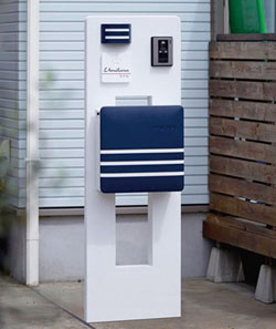 潮の香りと初夏のさわやかな風をイメージさせる、マリンスタイルの機能門柱。ホワイト×ネイビーの配色を基本に、アクセントにフロートやアンカーなど海をイメージさせるものを加えてちょっとした遊び心を取り入れています。