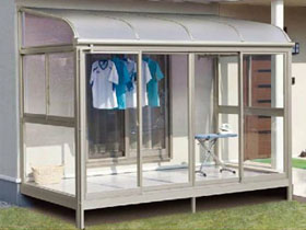 正面・側面・床のバリエーションで雨が降っても気兼ねなく洗濯物が干せるスペースがお好みに合わせてできあがります。