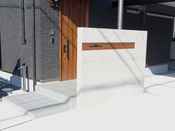 次に施主様がこだわったのは、弊社初となるタイルで作られた門柱。