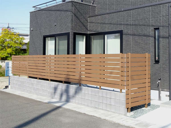 角地で交通量が割と多い所から目隠しフェンスをご要望。そこで、除雪時を考慮し、ブロック上に立てる事をご提案させて頂きました。