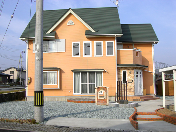 今回の外構工事は大江町。オレンジとホワイトを基調にしたとてもキュートなお家!!