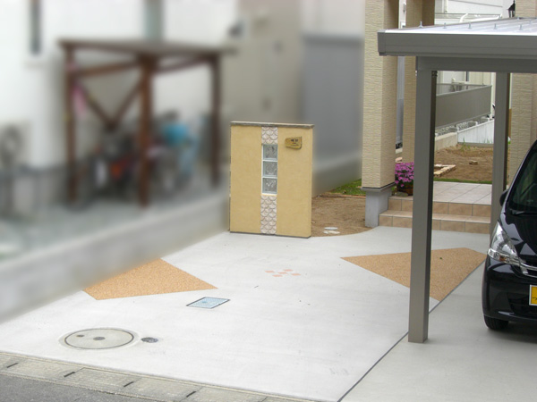 今回のご要望はおしゃれな外構。 しかし門柱にはガラスブロックを入れたいと言う旦那さん・・・。 でもちょっとかわいい感じも捨てがたい奥さん・・・。