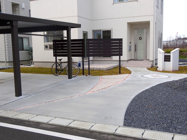 アプローチには白い天然石のワンポイントとデザインラインを入れておしゃれな雰囲気を出して見ました。
