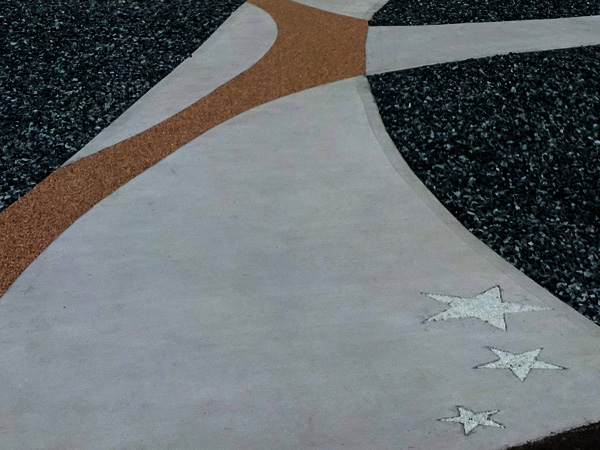 アプローチにはリンクストーンでおしゃれなラインを描き、更にアクセントで星のマークを加え、夜には蛍光石で光る様ご提案させて頂きました。