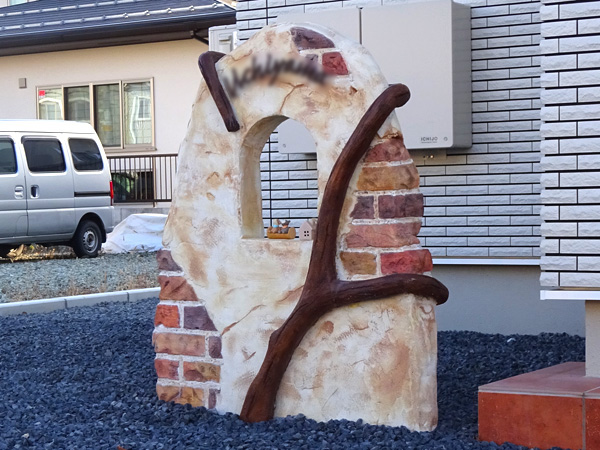 ご要望は個性的で面白い外構。と言う事でモルタル造形を取り入れたオンリーワン外構にチャレンジさせて頂きました。