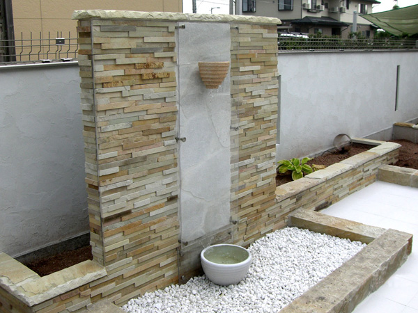 こうして奥さんのひらめきに助けられようやく2人3脚で仕上げた壁泉は外構家史上まれにみる究極の逸品となりました。その後も化粧砂利や植栽にこだわりながら、楽しそうに話している笑顔も忘れられない思い出になりました。