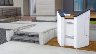 おしゃれでシンプルな外構というご要望で、ラインを活かしたオリジナルデザインのアプローチ周りやオリジナル表札とディーズガーデンの白いポストをセットした門柱、また白いポストとコーディネイトした目隠しフェンス等のデザインで、川沿いの風景に溶け込むおしゃれな外構を施工致しました。