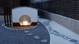 また、中庭には弊社オリジナルデザインのデッキと人工芝を併設。更に夏場の使い勝手を高める為、家側とフェンスにタープフックの取り付けをご提案させて頂きました。