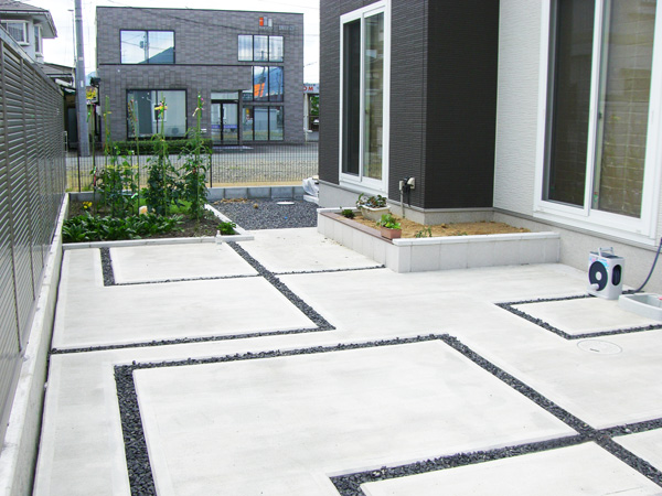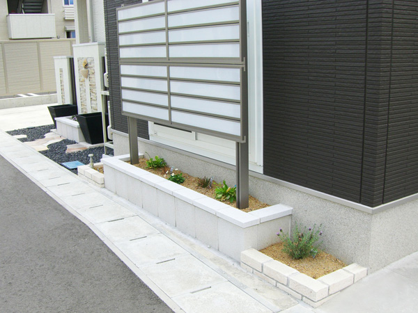 いつもお世話になっている業者さんからの紹介。要望はとにかくおしゃれでモダンなもの。門柱・カーポート・花壇・家庭菜園・道路側に目隠しフェンスを作ってほしいとの事。
