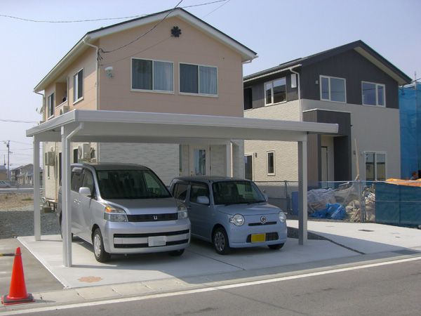 そこで今回は予算に合わせ駐車場にワンポイントとしてピンク系のクローバーを2つ入れアクセントに・・・。