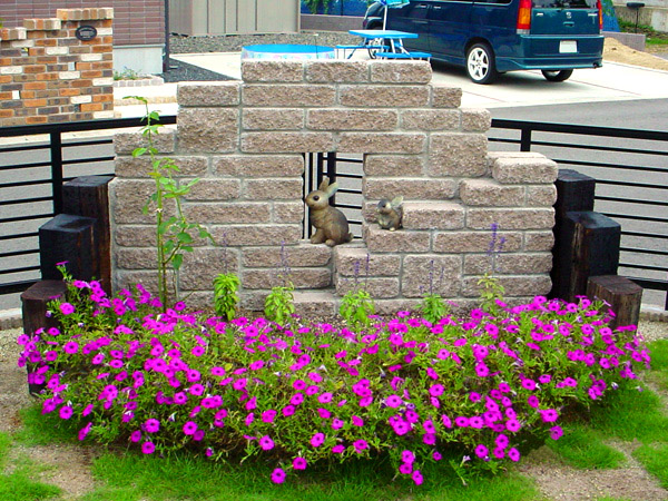 設計はもちろん、ブロックの拾い出しが大変でしたが、かわいい花壇が出来ました。