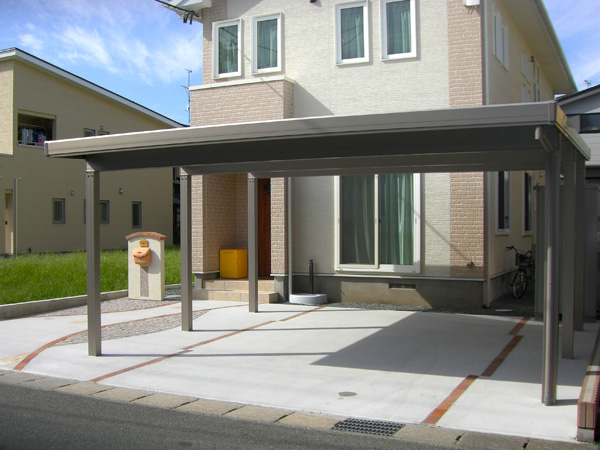 駐車場にはバランスを整え直線的にレンガを入れる事で、見栄えだけでなくヒビ割れ防止としての機能も待たせています。