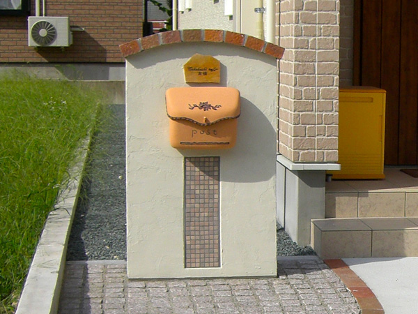 また、アプローチ両サイドに敷き込まれたピンク色のピンコロが、かわいい門柱と絡む事で更にかわいらしさを演出しています。ポストはもちろんディーズガーデン!!全国人気ナンバーワンのポーチです。